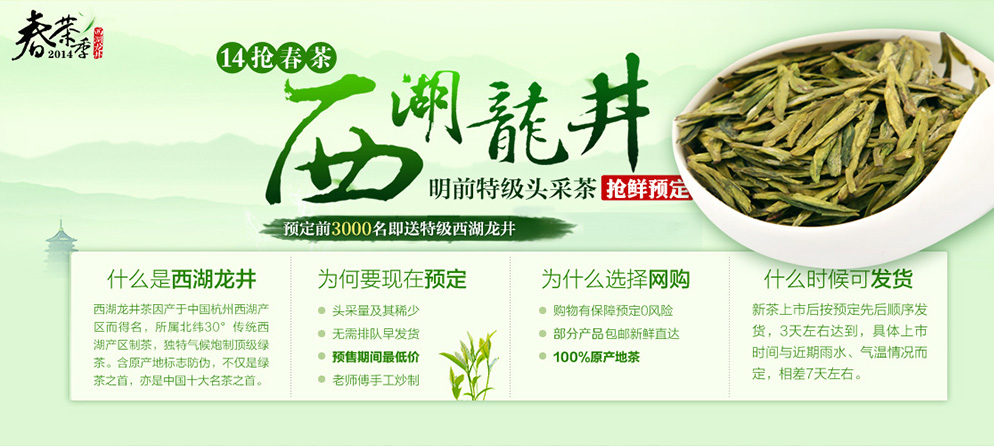 本品采用正品萬擔春AAA特級明前西湖龍井茶,以傳統(tǒng)牛皮紙包裝,盛于藍花布嵌面的木盒之中...
